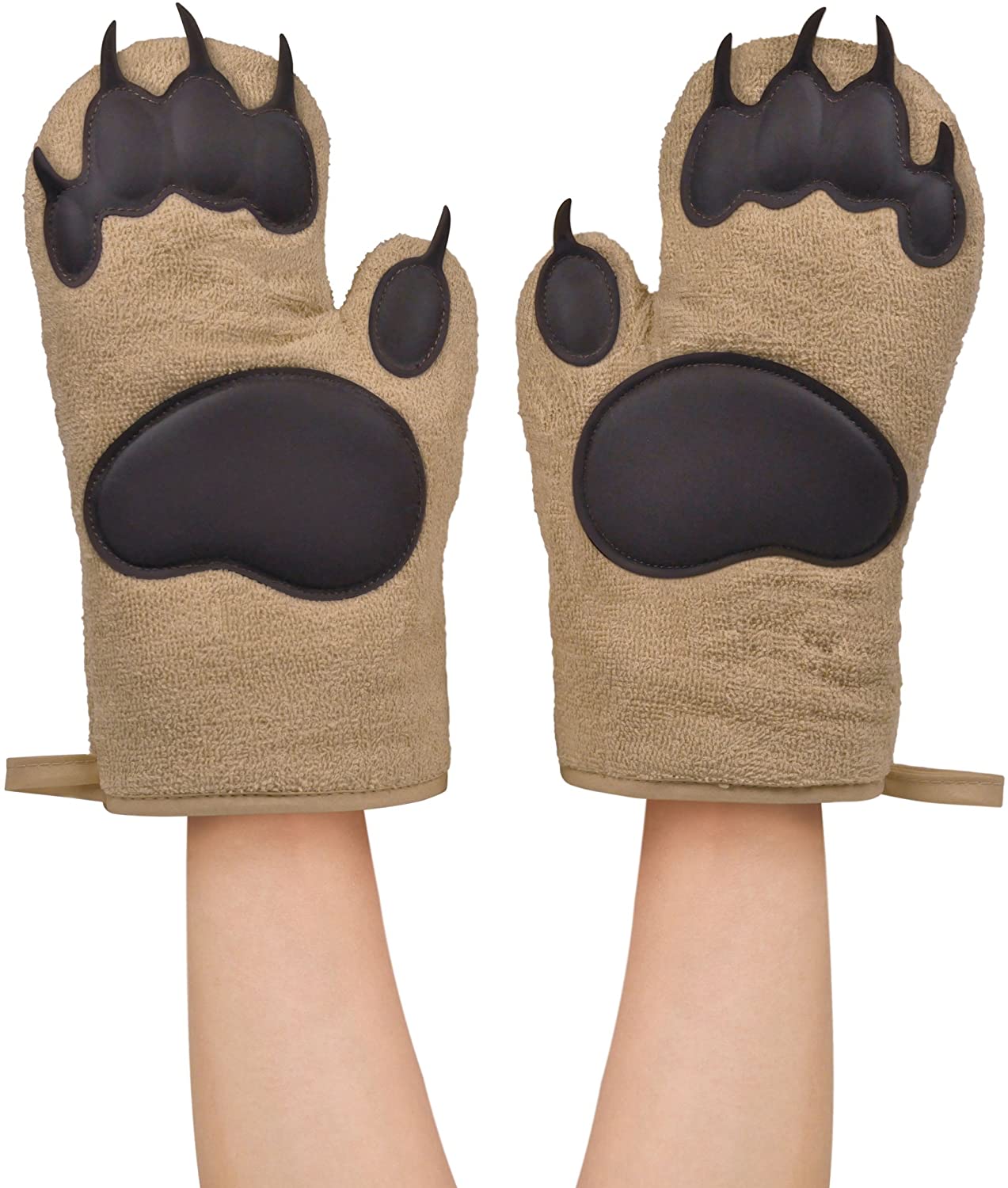 QUALITY MATERIALS: These insulated oven mitts feature “paw” pads constructed from heat resistant silicone, letting you handle hot foods easily, even when it’s bear-y hot!