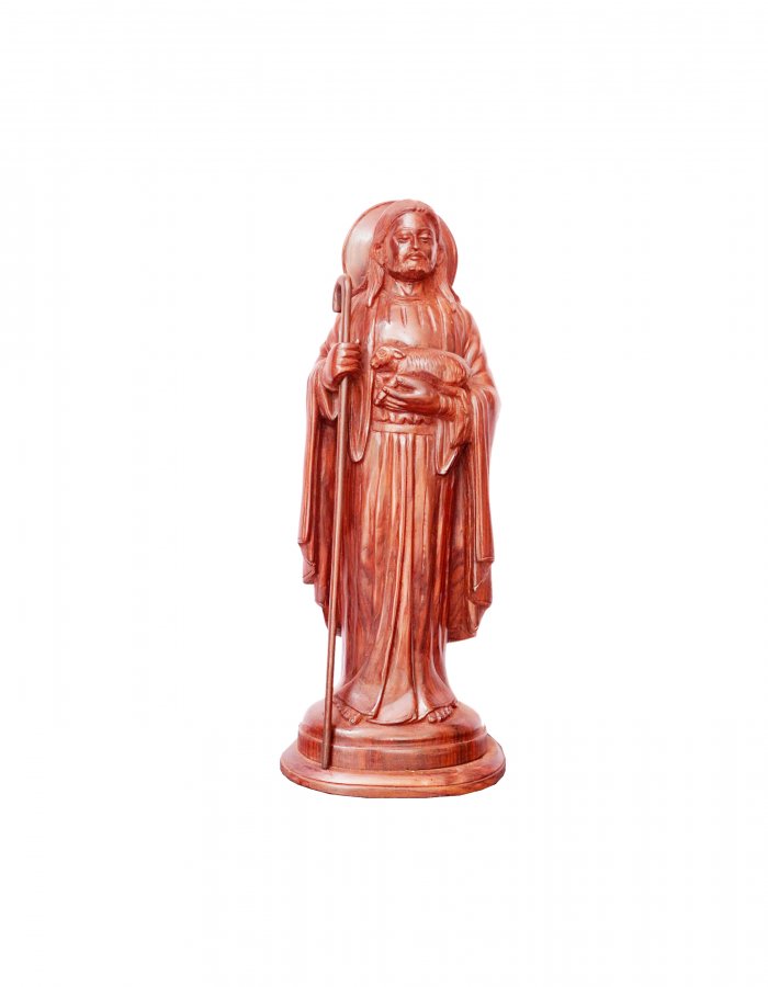 Hand Carved Rose Wood ”Good Shepherd” Sculpture -18-in