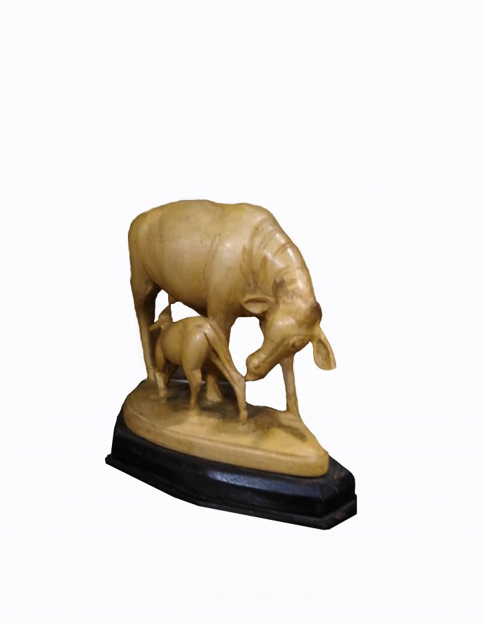 Hand Carved Wooden ”Cow With Calf” Sculpture -5-in
